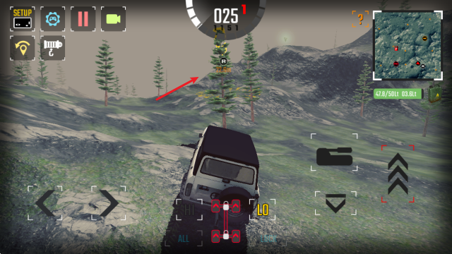 4 、后退 、可感受到不同地形(如泥泞、通过右侧的方向键控制前进后退 ,